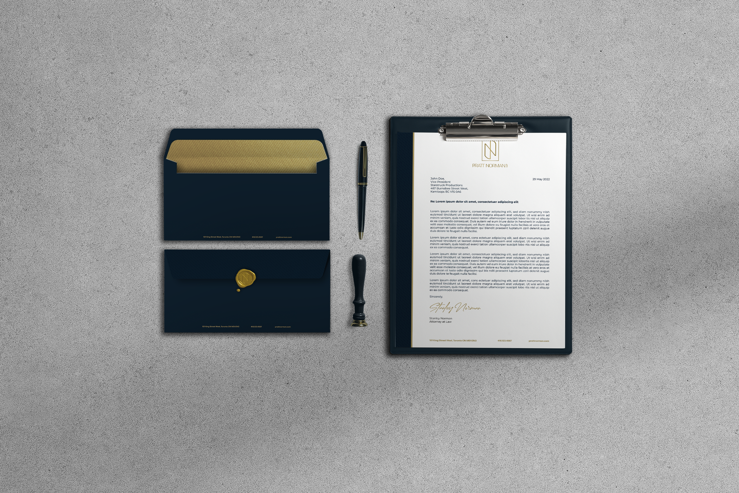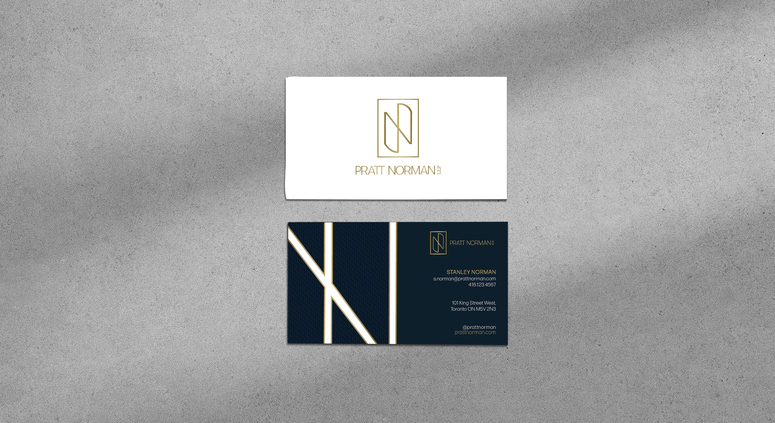 Pratt Norman LLP, a boutique entertainment law firm, required a visual identity for their brand including a logo system, logo animation, brand standards guideline, stationery design, and a responsive website design for the firm.
